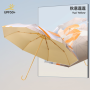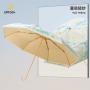 Name: Three-Fold Astronaut Umbrella Frame: Steel frame with fiber double ribs Canopy: Black-coated fabric Handle: Astronaut handle Size: 54*8 cm Diameter when open: 102 cm, Length when folded: 31 cm Packaging: Matching color fabric cover, OPP bag packaging Quantity: 60 pcs/box Box dimensions: 45/35/30 cm Gross weight: 17 kg