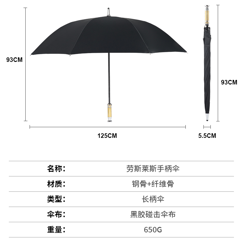 Product Name: 8-Rib Automatic Straight Umbrella Frame: Fiberglass ribs, iron central shaft Canopy: 280T pongee fabric Handle: Color-matched rubber-coated handle Specification: 685*8K Diameter under umbrella: 125CM Packaging: Single fabric sleeve, OPP bag Quantity per carton: 40 pieces/carton Carton size: 105*27*27CM Weight per umbrella: 0.65KG Net/Gross weight per carton: 26KG/27KG
