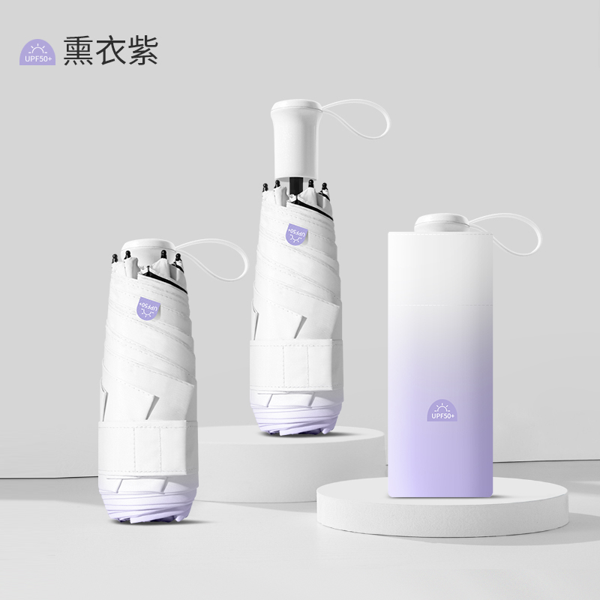 Name: 50% Fold Ring Handle Umbrella Frame: Black steel frame Canopy: Thickened colored PVC Handle: Rubber paint Size: 52*6K Diameter under umbrella: 90 cm, folded length: 18 cm Packaging: Same color fabric cover with bag Quantity: 60 pieces/box Carton size: 48*35*26 cm