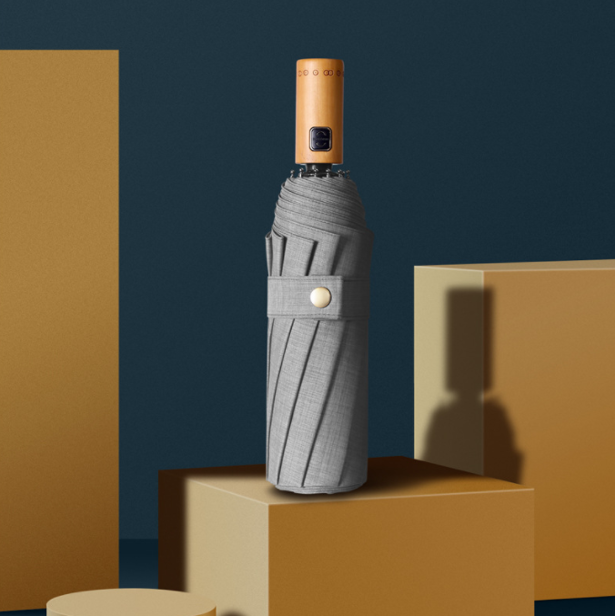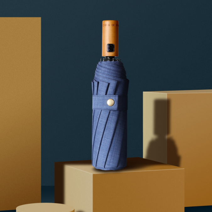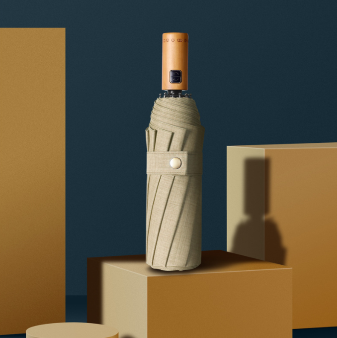 Name: 10-Rib Three-Fold Automatic Umbrella with Large Wooden Handle, Black Coated Fabric Sun Umbrella Frame: Steel, Fiberglass Canopy: Black Coated Fabric Handle: Solid Wood Handle Size: 585*10 Diameter when open: 103 cm, Length when folded: 31 cm Packaging: Matching fabric bag, matte bag packaging Quantity: 50 pieces/box Box dimensions: 45/35/30 cm Gross weight: 24 kg Single umbrella packaging size: 34*6.5*6.5 cm Weight: 0.462 kg