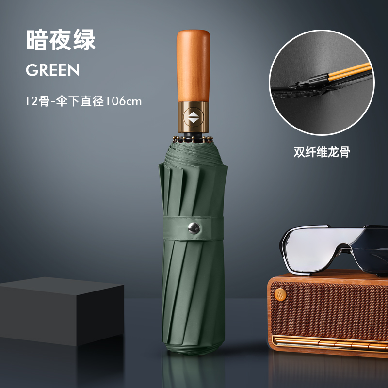 Name: 12-Rib Antique Bronze Brushed Forward Double Rib (24 Ribs) Frame: Steel frame, Fiber frame Canopy: Black coating fabric, natural light Handle: Solid wood handle Size: 58.5*12 Diameter under umbrella: 105 cm, Length when folded: 32 cm Packaging: Same color fabric sleeve, frosted bag packaging Quantity: 50 pcs/box Carton size: 48/35/32 Gross weight: 20 KG