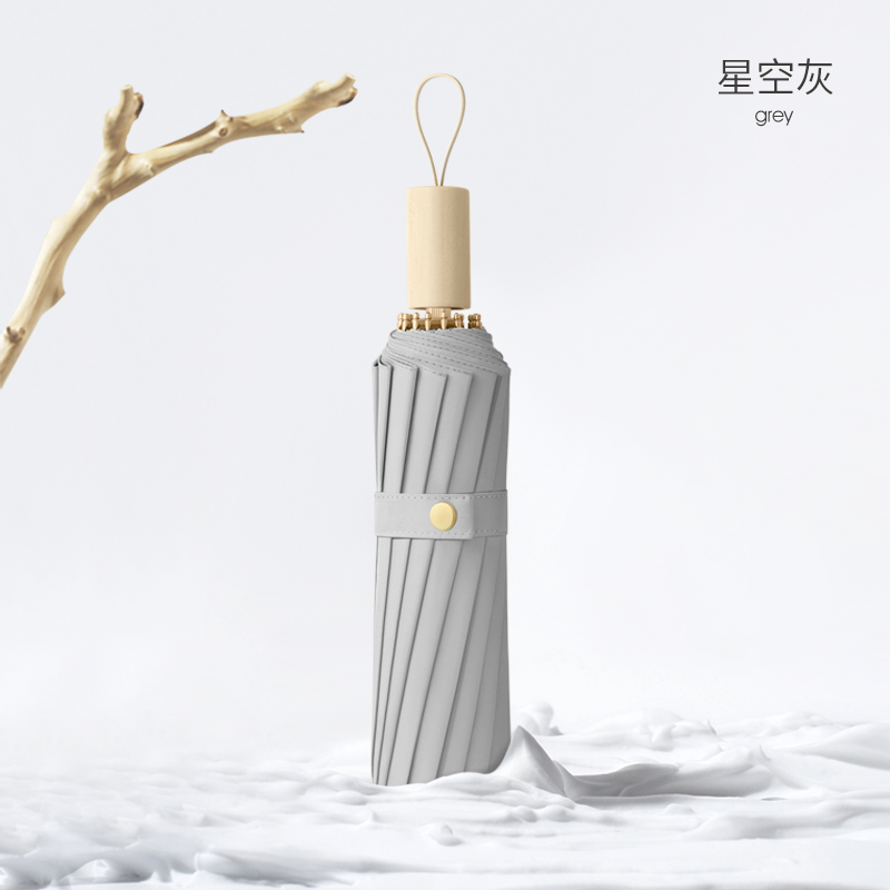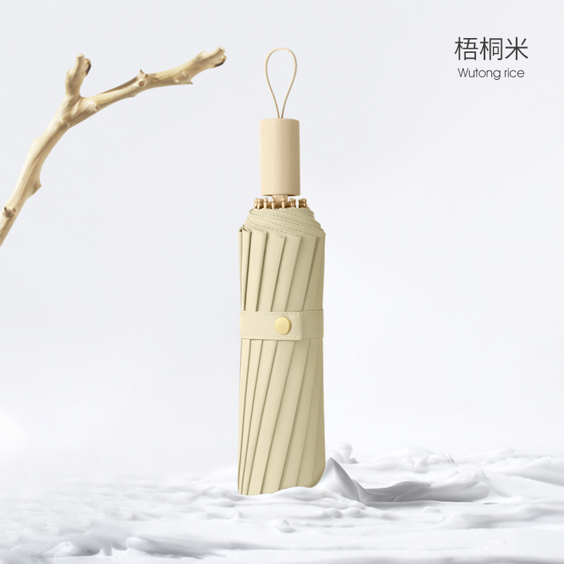 Name: Three-fold Manual 16-rib Umbrella Frame: Gold Aluminum Alloy Canopy: Black Coating Fabric Handle: Solid Wood Handle Specifications: 54*16, Diameter under the umbrella 100cm, Folded length 28cm Packaging: Matching color fabric sleeve, frosted bag Quantity per box: 50 pieces/box Box dimensions: 50*32*30 cm Single umbrella packaging size: 30*7*7 cm Weight: 0.42 kg Gross weight: 21 kg