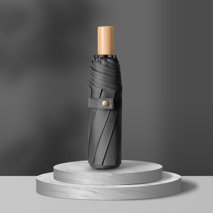 Name: Three-fold Manual Small Wooden Black Coating Umbrella Frame: Black lacquered fiber Umbrella Fabric: Thickened black coating material Handle: Solid wood handle Specifications: 54*8, umbrella diameter 95cm, length when folded 28cm Packaging: Matching color cloth cover, frosted bag packaging Quantity: 60 pieces/box Box Dimensions: 50*32*30 cm Single Umbrella Packaging Size: 30*6*6 cm Weight: 0.32 kg Gross Weight: 20.9 kg