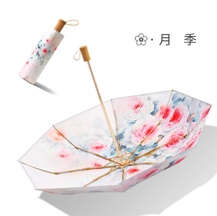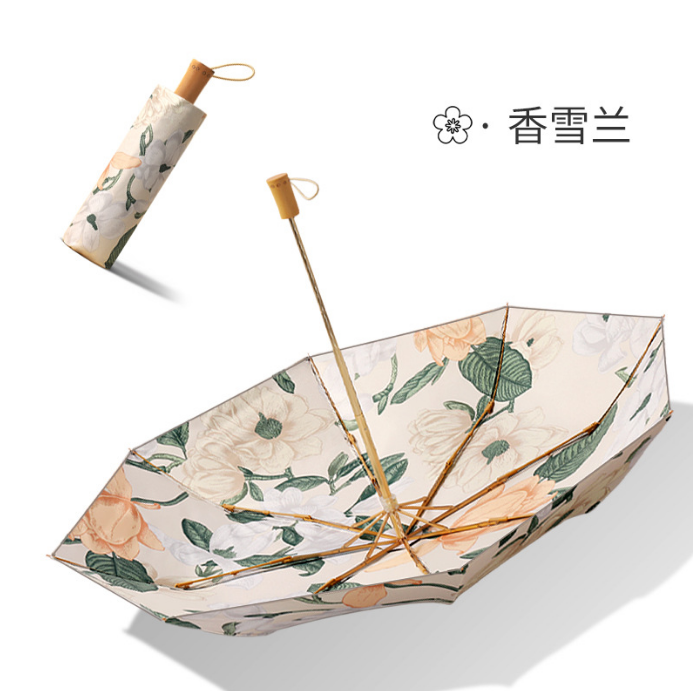 Name: Double-sided Floral Black Rubber Umbrella Frame: Gold aluminum alloy frame Canopy: Double-layer black rubber fabric Handle: Solid wood handle Specifications: 54" diameter under umbrella, 98 cm folded length 28 cm Packaging: Same color cloth cover, matte bag packaging Quantity: 50 pcs/box Box dimensions: 50*32*30 cm Single umbrella packaging size: 30*7*7 cm Weight: 0.37 kg Gross weight: 18 kg