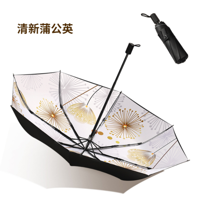 Name: Manual Triple-Fold Double-Layer Umbrella Frame: Black aluminum alloy frame Fabric: Outer layer black coating, inner layer digital print pongee Handle: Rubber-coated handle Specifications: 54*8 Umbrella diameter: 98cm, folded length: 28cm Packaging: Matching color fabric sleeve, frosted bag packaging Quantity: 50 pieces per box Box dimensions: 50*32*30cm Single umbrella packaging size: 30*7*7cm Weight: 0.32kg Gross weight: 17.25kg
