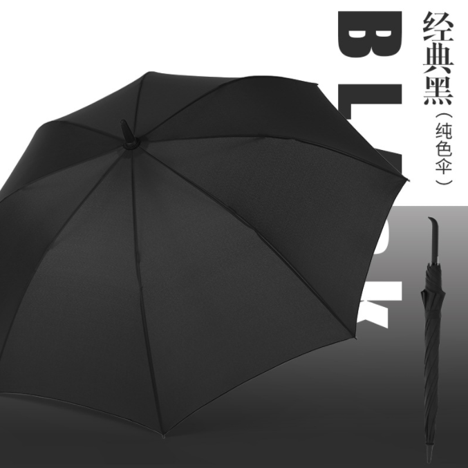 Product Name: 16-rib Wooden Straight Handle Umbrella Frame: Fiberglass ribs, iron central shaft Canopy: Black coated fabric Handle: Wooden straight handle Specification: 685*16K Umbrella Diameter: 123CM Packaging: Individual fabric sleeve, OPP packaging Quantity per Box: 50 pieces/box Box Dimensions: 95*27*27CM Weight per Umbrella: 0.6KG Net/Gross Weight per Box: 24KG/25KG