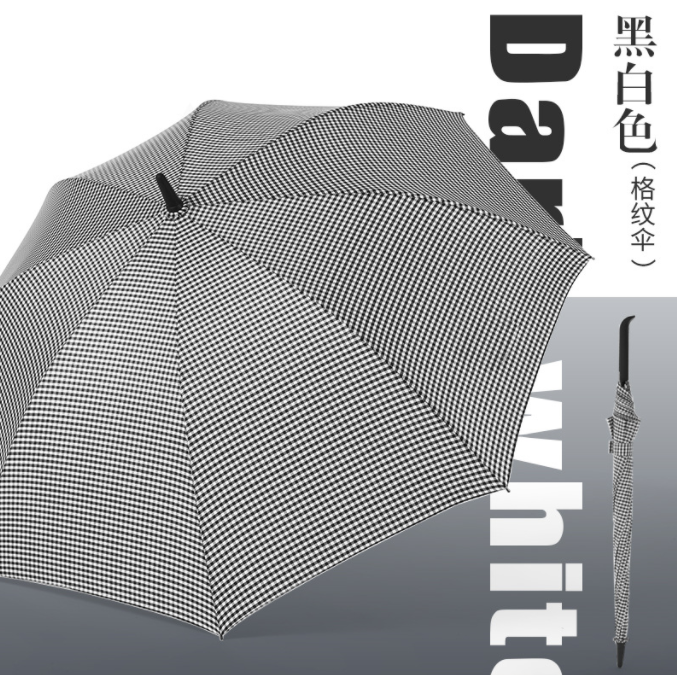 Name: Straight Rod Plaid Umbrella Frame: Fiberglass Frame Canopy: Plaid Oxford Fabric Handle: Rubber Paint Specifications: 63.5*8 Diameter when open: 110cm, length when folded Packaging: Natural color cloth cover plus OPP bag Quantity: 40 pieces/box Box dimensions: 100/25/25 Gross weight: 22KG