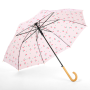 Product Name: 8-Rib Wooden Curved Handle Straight Umbrella Frame: Fiberglass ribs, iron center shaft Canopy: 210T pongee fabric Handle: Wooden curved handle Specification: 635*8K Diameter under umbrella: 113CM Packaging: Snap-on fabric cover, OPP packaging Quantity per carton: 50 pcs/carton Carton size: 95*27*27CM Weight per umbrella: 0.6KG Net/Gross weight per carton: 24KG/25KG
