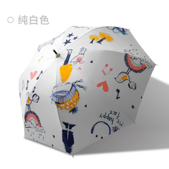 Name: Bone Black Digital Printing Umbrella Frame: Steel frame, fiber Canopy: Black PVC digital fabric Handle: Black wrapped handle Specifications: 585*8 Umbrella diameter when open: 100 cm, length when folded: 86 cm Packaging: OPP bag Quantity: 40 pieces per box Box dimensions: 100/25/25 Gross weight: 19 KG