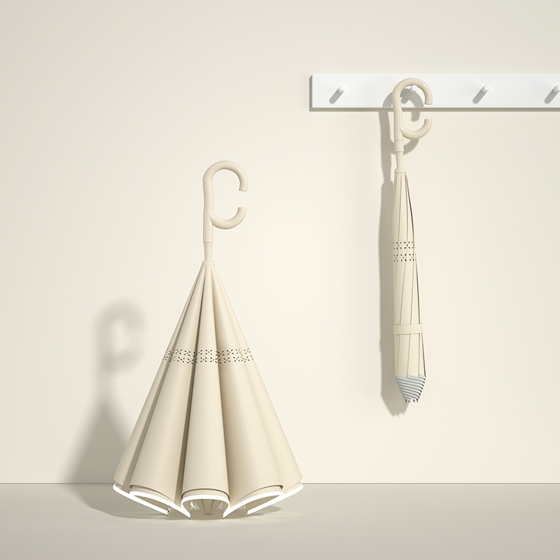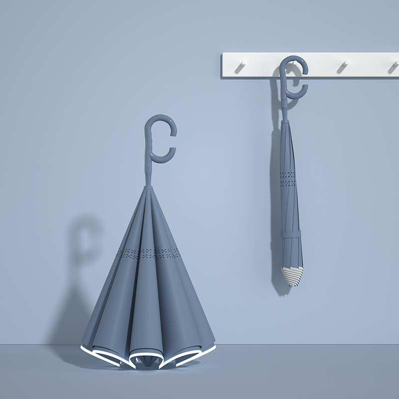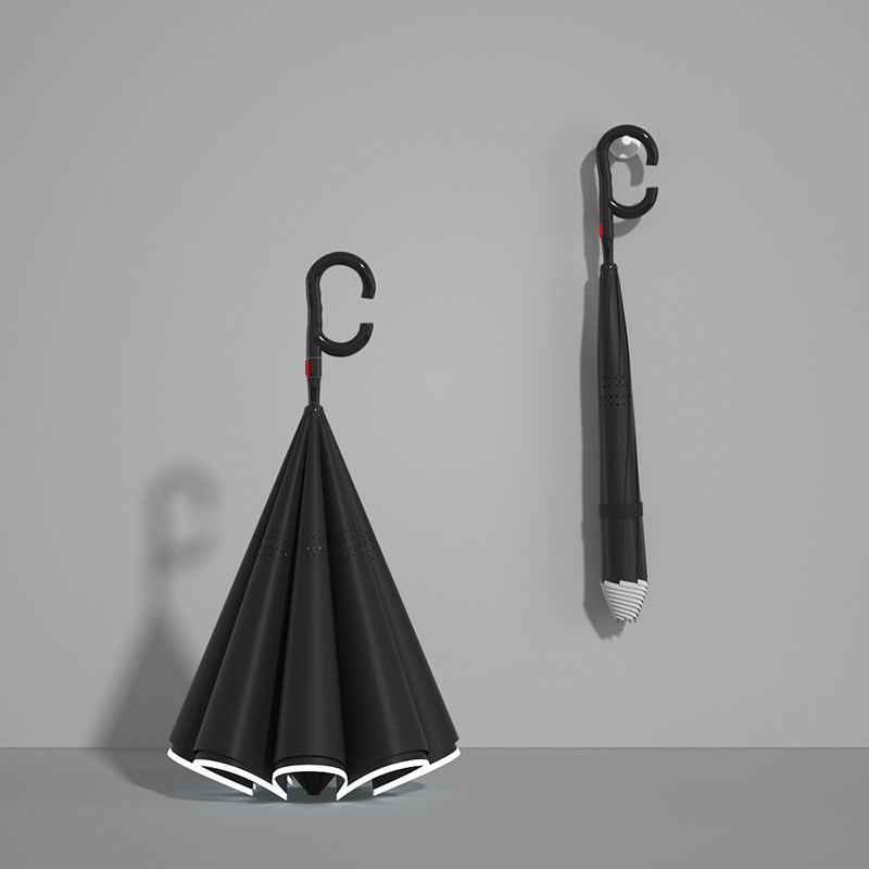 Name: Straight Handle Double-Layer Reverse Car Umbrella Frame: Black steel frame Canopy: Double-layer pongee fabric Handle: Color-matched handle Specifications: 58.5*8 cm Diameter under umbrella: 100 cm, folded length: 89 cm Packaging: OPP bag Quantity: pieces/carton Carton dimensions: 100/25/25 Single umbrella packaging size: 89*14*14*14 cm Weight: Manual 0.5 kg, Automatic 0.6 kg