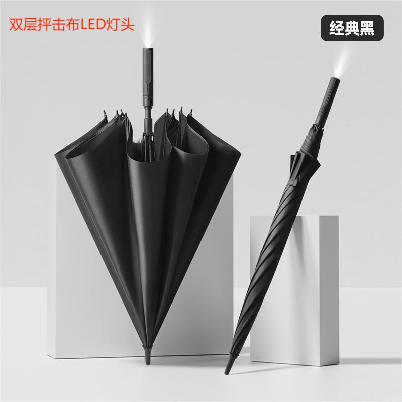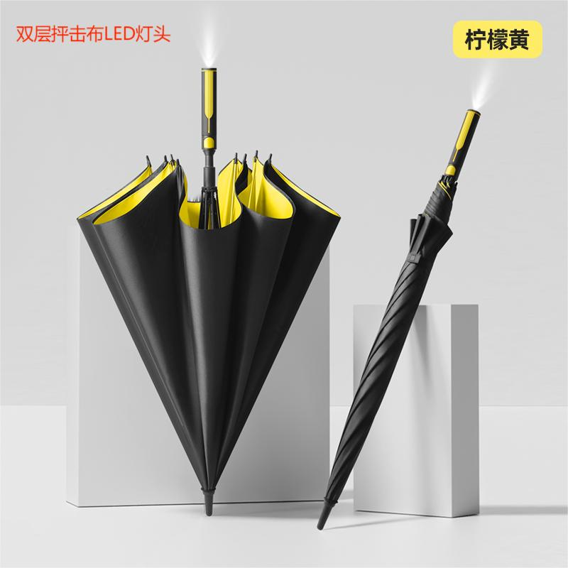 Name: Straight Rod Umbrella Double Layer Frame: Full fiber frame with colored fabric frame LED lamp head Canopy: Double-layer ripstop fabric / black outside with inner colored layer Handle: Matching color handle Size: 58.5*24 cm Umbrella diameter: 100 cm, folded length: 96 cm Packaging: OPP bag Quantity: 40 pcs/box Box dimensions: 100/25/25