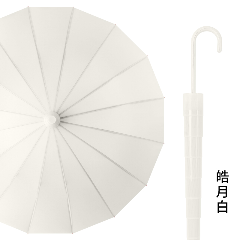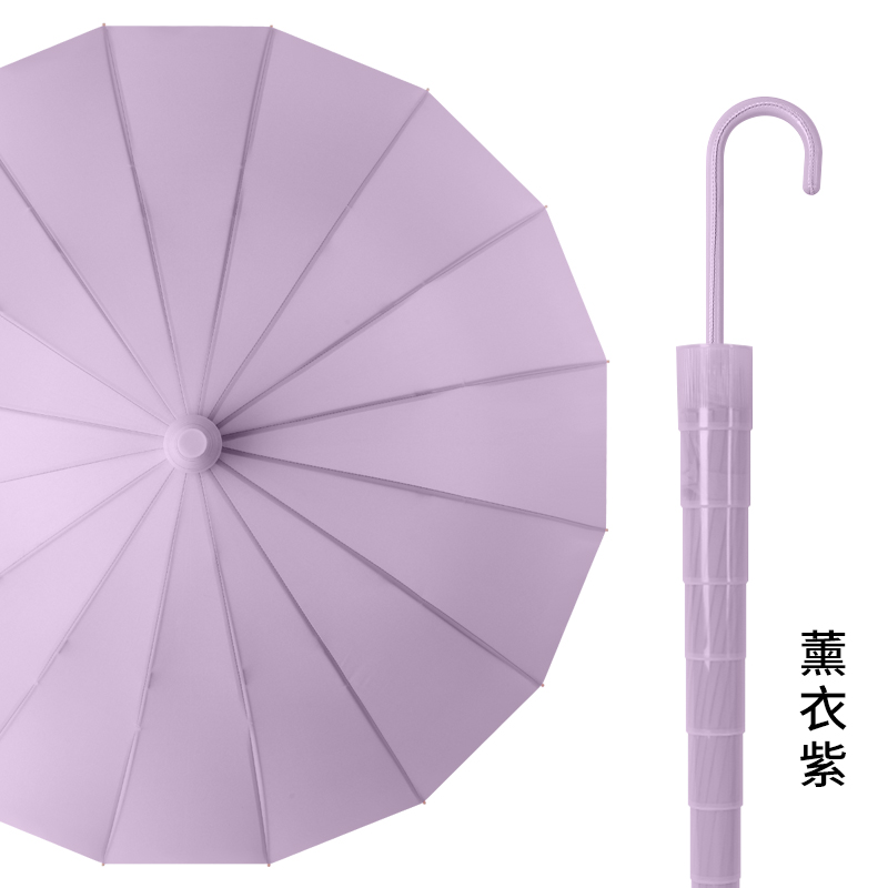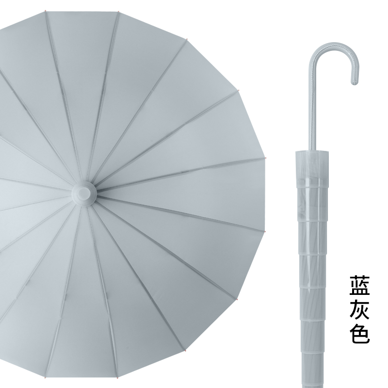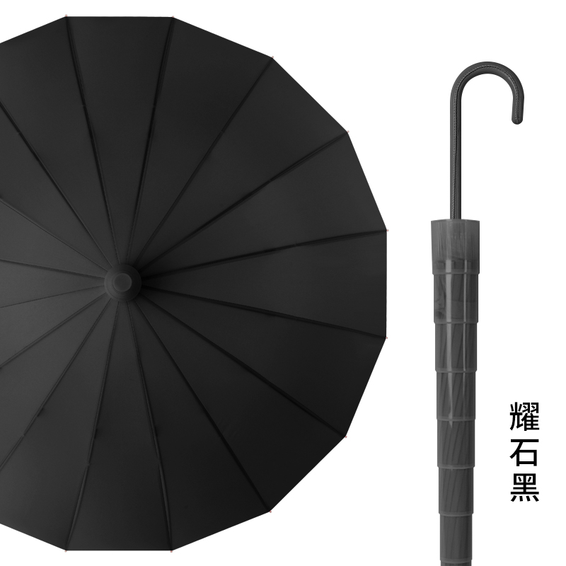 Name: 16-Rib Automatic Waterproof Straight Umbrella Frame: Steel frame with fiber Canopy: Pongee fabric Handle: Leather handle Specifications: 63.8*16 Diameter when open: 106cm, Length when folded: 86cm Packaging: OPP bag, Quantity: 40 pcs/box Box dimensions: 100/25/25 Gross weight: 21KG