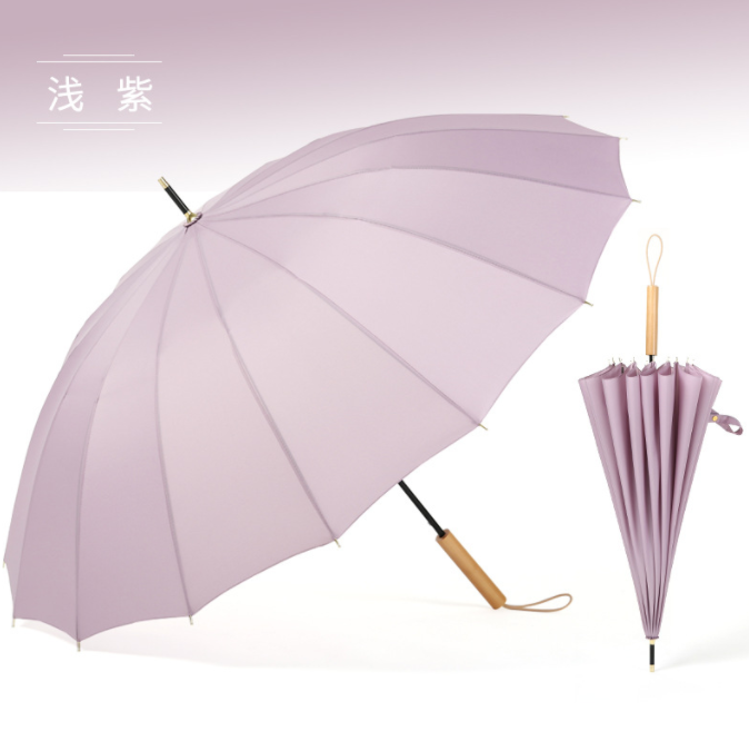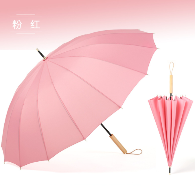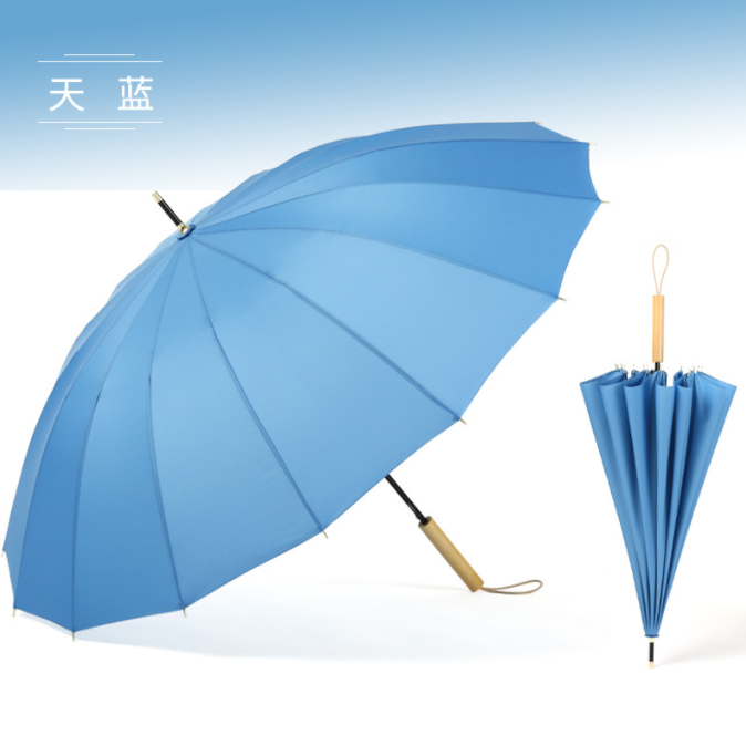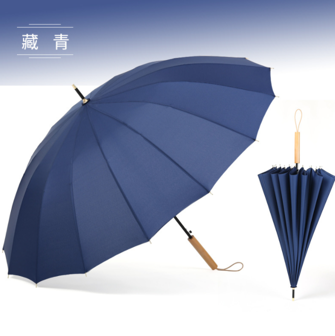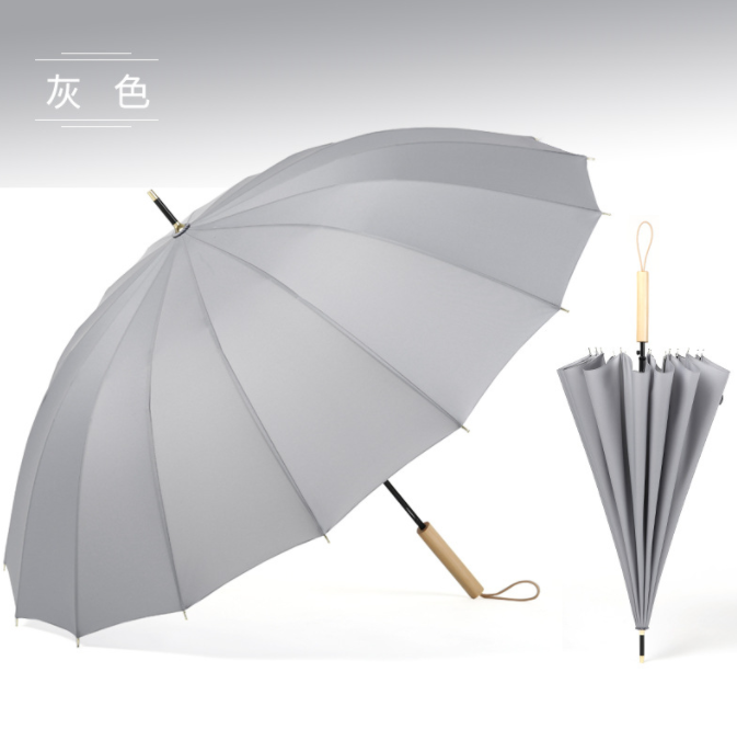 Name: 16-Rib Straight Umbrella Frame: Steel frame with fiberglass Umbrella fabric: Densely woven nylon Handle: Solid wood handle Specifications: 58.5*16 Diameter when open: 106 cm, Length when folded: 86 cm Packaging: OPP bag Quantity: 40 pcs/box Box dimensions: 100/25/25 Single umbrella packaging size: 89*11*11*11 cm Weight: 0.45 kg Gross weight: 18.65 kg
