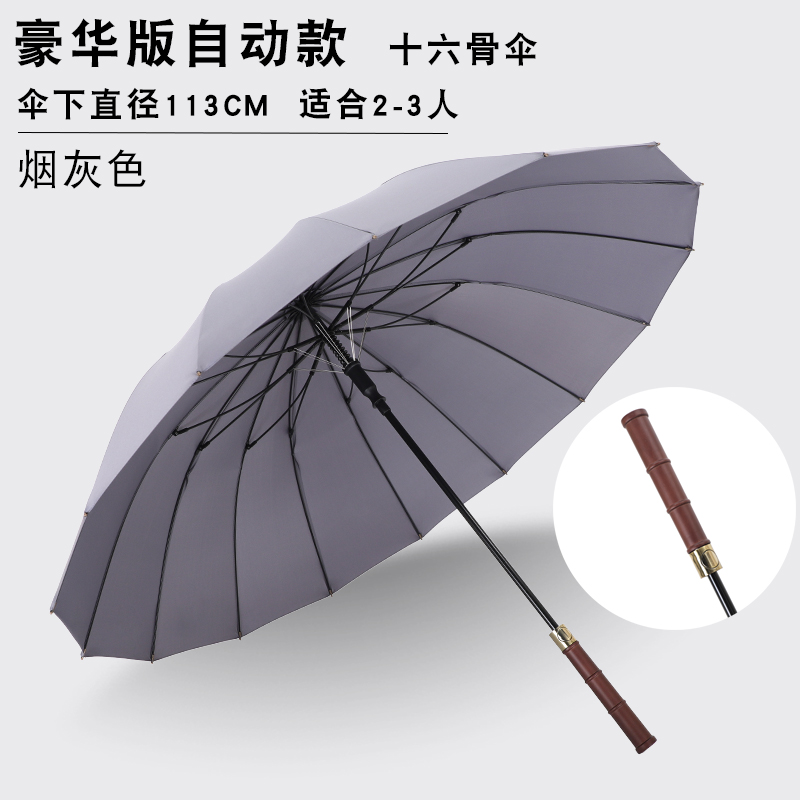 Name: 16-Rib Straight Umbrella Frame: Full Fiber Frame Canopy: Ripstop Fabric Handle: Solid Wood Bamboo Handle Specifications: 63.5*16 Umbrella Diameter: 113 cm, Folded Length: 86 cm Packaging: OPP Quantity: 40 pieces/box Box Dimensions: 100/25/25 Gross Weight: 22 KG