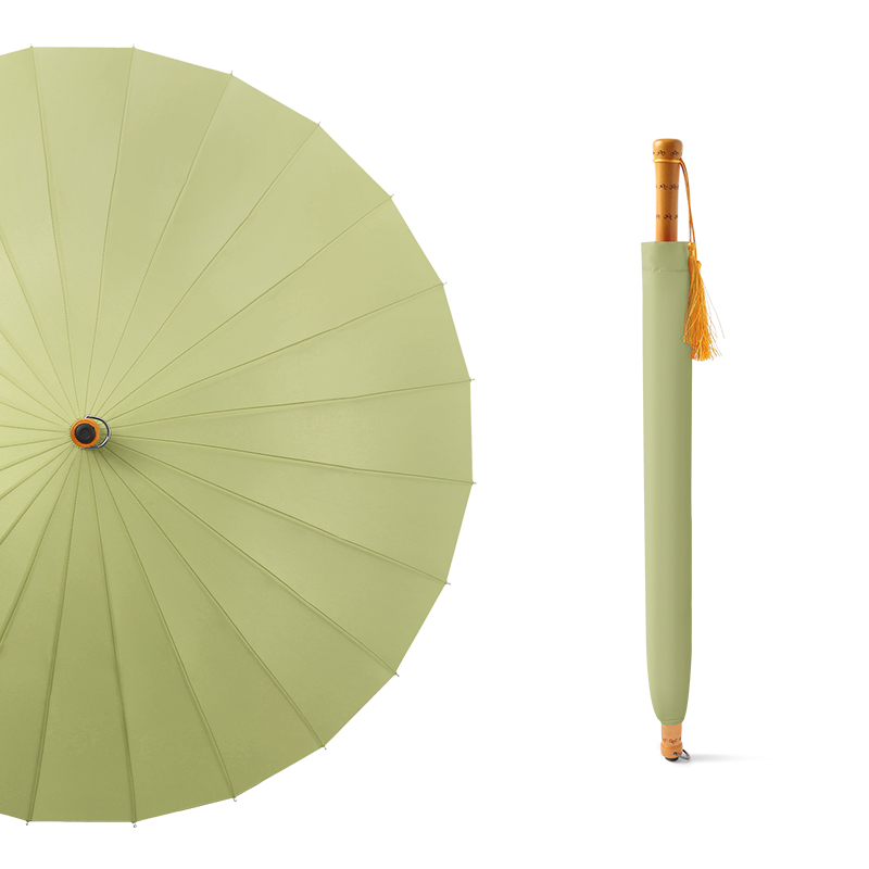 Name: 24-Rib Straight Umbrella Frame: Solid Wood with Fiber Fabric: SJ Impact Cloth Handle: Solid Wood Handle Specifications: 58.5cm Umbrella Diameter: 1106cm, Folded Length: 90cm Packaging: OPP Bag Quantity: 40 pieces/box Box Size: 100/25/25 Gross Weight: 24KG