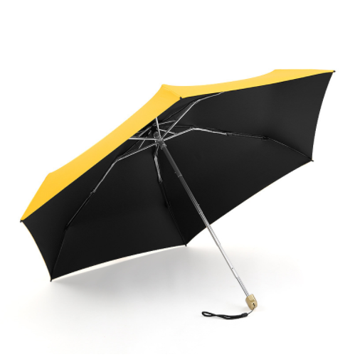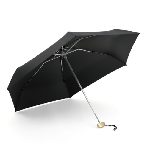 Name: Flat Five-Fold Umbrella Frame: Flat five-fold manual aluminum alloy frame Umbrella Fabric: Black coated fabric Handle: Electroplated gold matte handle Specification: 52cm*6K Diameter under umbrella: 95cm, Length when folded: 18cm Packaging: Matching color fabric cover, matte bag packaging Quantity: 100 pcs/box Box Dimensions: 50/32/30 Single Umbrella Packaging Size: 17.5*8.5*5.5 cm Weight: 0.23 kg Gross Weight: 23.8 kg