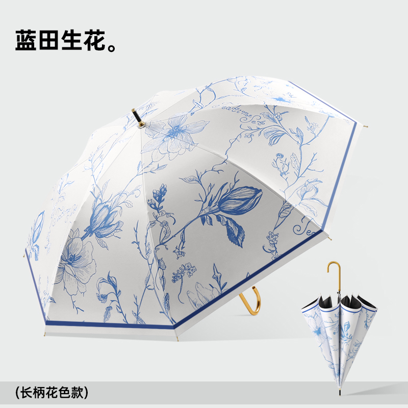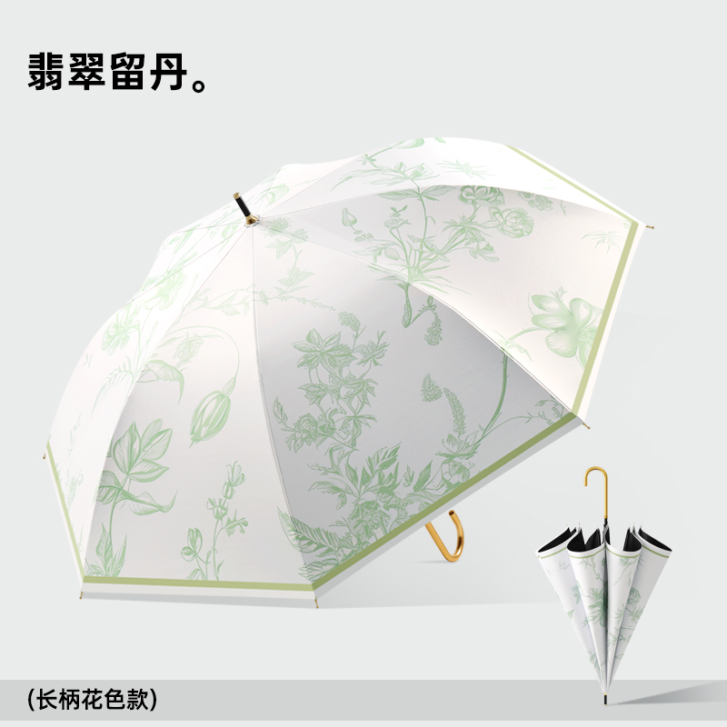 Name: Colorful Straight Rod Umbrella with Digital Printing and Small Gold Hook Frame: Fiber reinforced steel frame Canopy: Black rubberized fabric Handle: Gold aluminum alloy curved handle Specification: 585*8 Umbrella diameter: 100 cm, folded length: 86 cm Packaging: OPP bag Quantity: 40 pieces/box Box size: 90*28*26 cm Gross weight: 19 kg