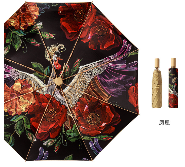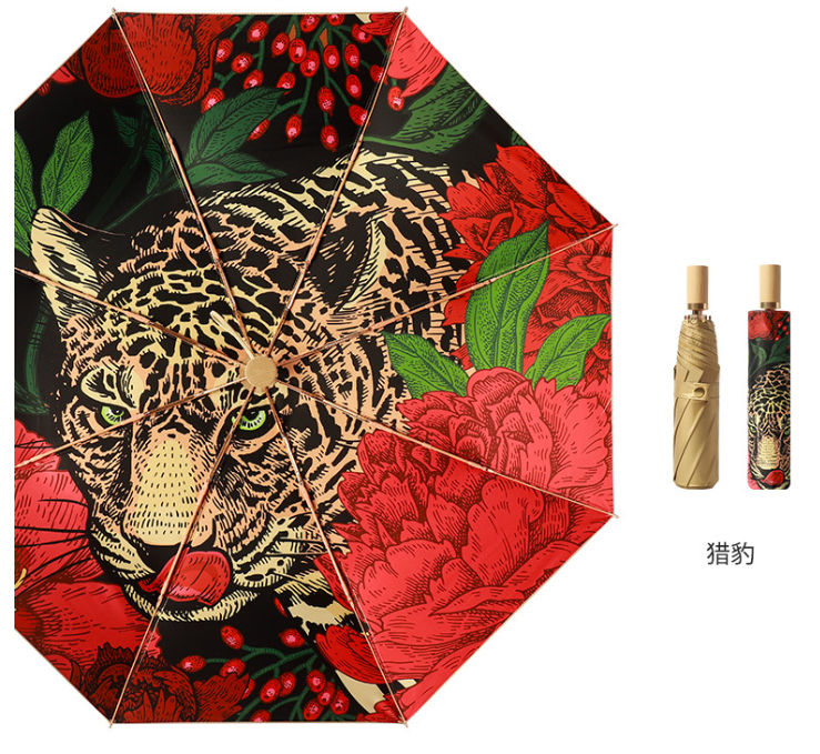 Name: Gold-Coated Sun Umbrella Frame: Gold Aluminum Alloy Frame Canopy: Gold-Coated Digital Print Handle: Solid Wood Handle Specifications: 54*8 Packaging: Same Color Fabric Sleeve, Frosted Bag Packaging Quantity: 60 Box Size: 50/32/30 Gross Weight: 0.38