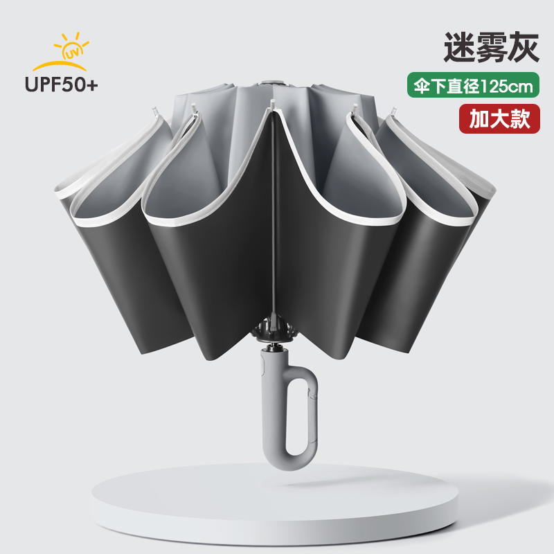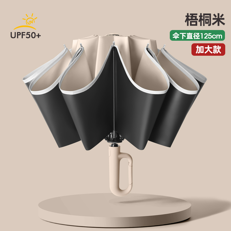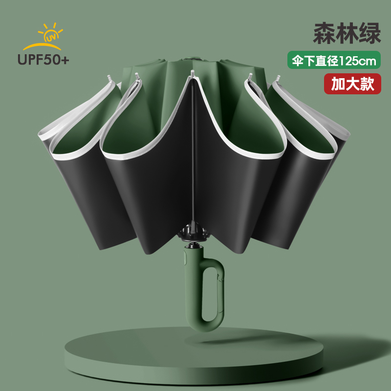 Name: Extra Large 27-inch 10-Rib Automatic Hook Umbrella Frame: Aluminum Alloy Frame Canopy: Black Coating Natural Light Handle: ABS Handle Specifications: 68.5*10 cm Diameter When Open: 105 cm, Length When Folded: 32 cm Packaging: Matching Color Fabric Sleeve, Frosted Bag Quantity per Box: 50 pcs/box Box Size: 48*35*28 cm Gross Weight: 24 KG