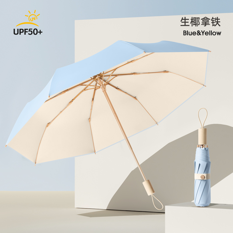 Name: Three-Fold Astronaut Umbrella Frame: Steel frame with fiber double ribs Canopy: Black-coated fabric Handle: Astronaut handle Size: 54*8 cm Diameter when open: 102 cm, Length when folded: 31 cm Packaging: Matching color fabric cover, OPP bag packaging Quantity: 60 pcs/box Box dimensions: 45/35/30 cm Gross weight: 17 kg