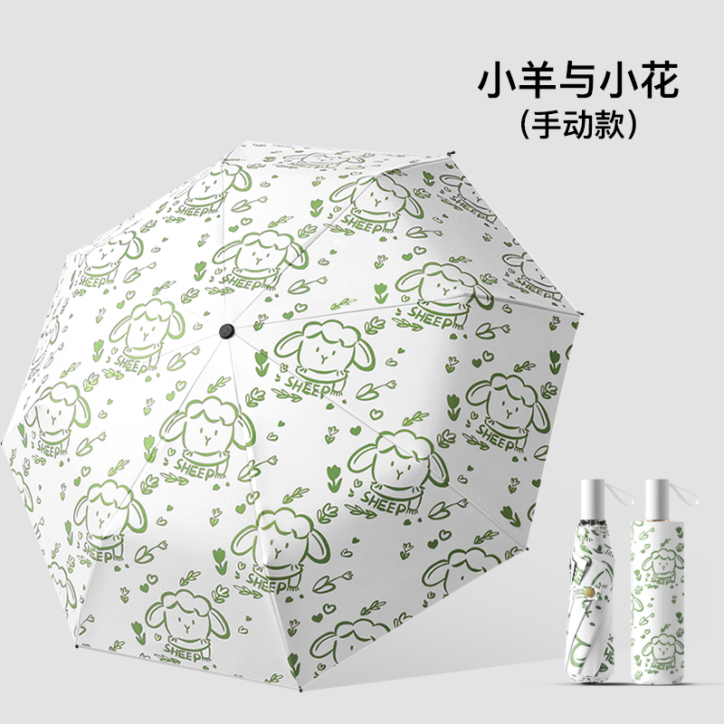 Name: Little Lamb and Little Flower Frame: Black lacquered steel frame Canopy: Black coated fabric with natural light Handle: Manual/Automatic duck egg handle Specification: 54*8 Packaging: Matching color fabric cover, frosted bag packaging Quantity: 60 Carton Size: 50/32/30 Gross Weight: 0.45