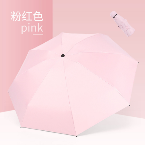 Name: Pull-Ring Six-Fold Umbrella Frame: Black steel frame Canopy: Black rubber fabric Handle: ABS Specifications: 52*6K Diameter under umbrella: 90 cm, folded length: 14 cm Packaging: Matching color cloth bag Quantity: 100 pcs/box Box size: 45*35*30 cm Individual package size: 17.5*8.5*5.5 cm Weight: 0.23 kg Gross weight: 25 kg