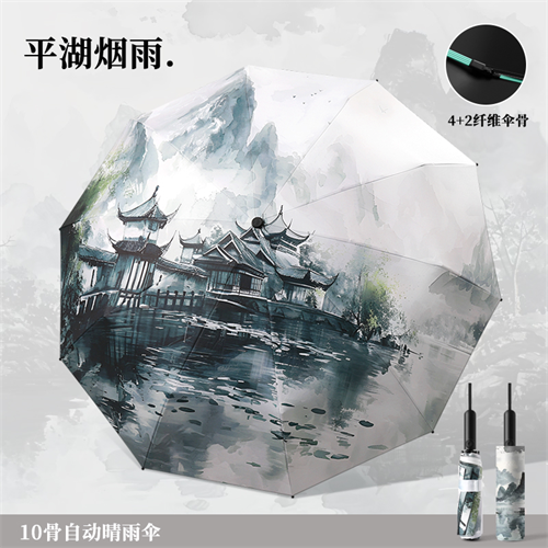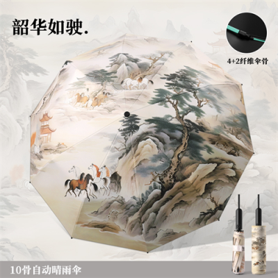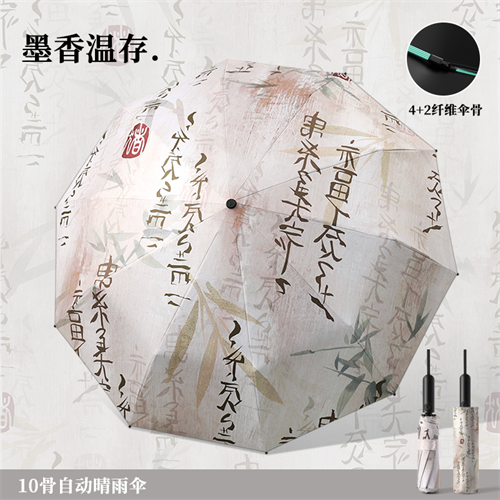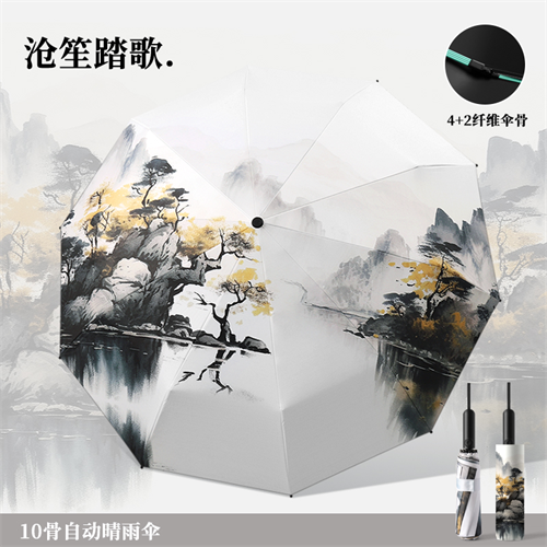 Name: 10-Rib Digital Printing Automatic Umbrella Frame: 42 Rib Frame Canopy: Black Coating Natural Light Handle: ABS Handle Specifications: 58.5*10, Diameter under umbrella 105cm, Folded length 32cm Packaging: Same color fabric sleeve, matte bag Packaging Quantity: 50 pieces/box Box Dimensions: 45*35*30 cm Single Umbrella Packaging Size: 34*6.5*6.5 cm Weight: Gross Weight: