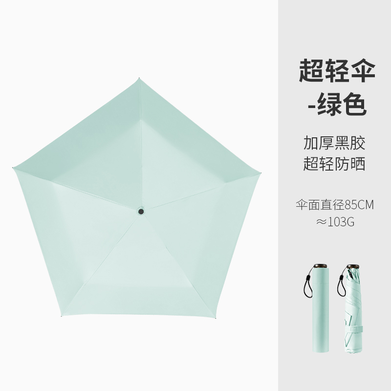 Name: Three-fold five-rib ultra-light carbon fiber black fabric sunshade umbrella Frame: Steel ribs, fiber Canopy: Black fabric Handle: ABS Specifications: 50*5 Underside diameter: 95cm, folded length: 16cm Packaging: Same-color cloth cover, frosted bag packaging Quantity: 60 pieces/box Box dimensions: 48*30*28 cm Gross weight: 0.23 kg ...