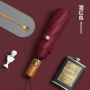 Name: Three-Fold Automatic Frame: Steel frame Canopy: Black coated fabric Handle: Rubber paint Specifications: 54*8, canopy diameter 95cm, folded length 16cm Packaging: Same-color cloth cover, matte bag packaging Quantity: 60 pieces/box Box dimensions: 48*30*28 cm Gross weight: 18KG