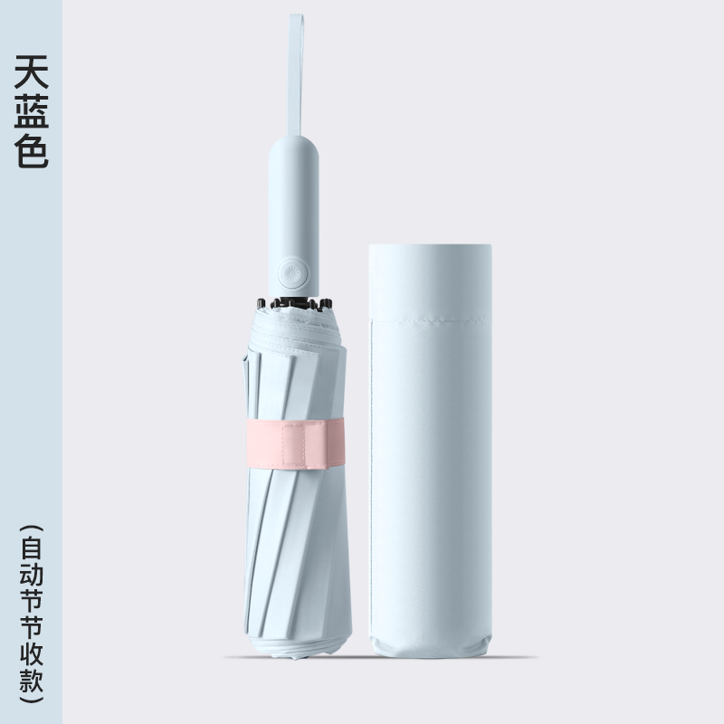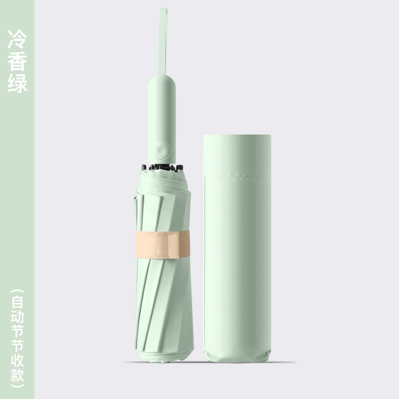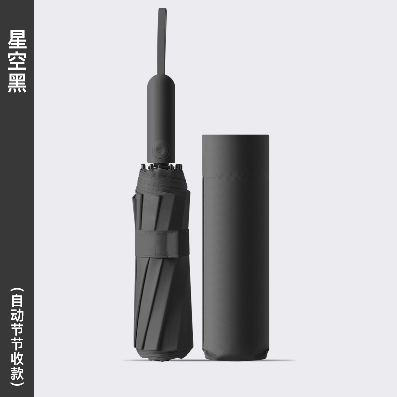 Name: Three-Fold Automatic Frame: Steel frame Canopy: Black coated fabric Handle: Rubber paint Specifications: 54*8, canopy diameter 95cm, folded length 16cm Packaging: Same-color cloth cover, matte bag packaging Quantity: 60 pieces/box Box dimensions: 48*30*28 cm Gross weight: 18KG