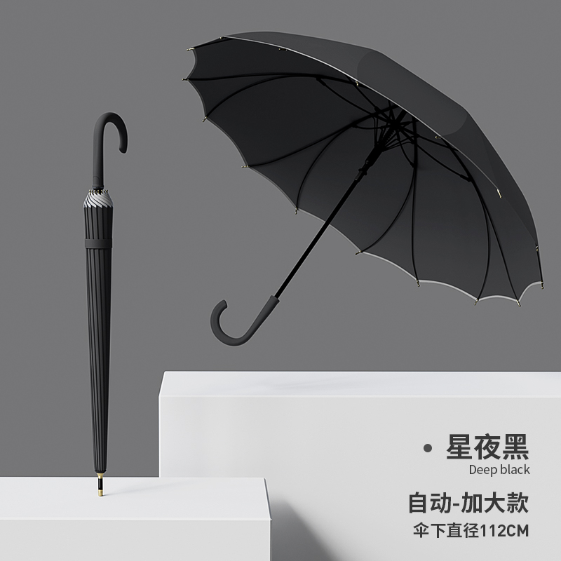 Name: Straight Rod Umbrella with Curved Handle Frame: Steel frame Canopy: Impact fabric Handle: Rubber-coated curved handle Specification: 63.5*8 cm Diameter when open: 112 cm, Length when folded: 86 cm Packaging: OPP bag Quantity: 40 pieces/box Box dimensions: 100*25*25 cm Single umbrella packaging size: 89*11*11*11 cm Weight: 0.478 kg Gross weight: 20 kg