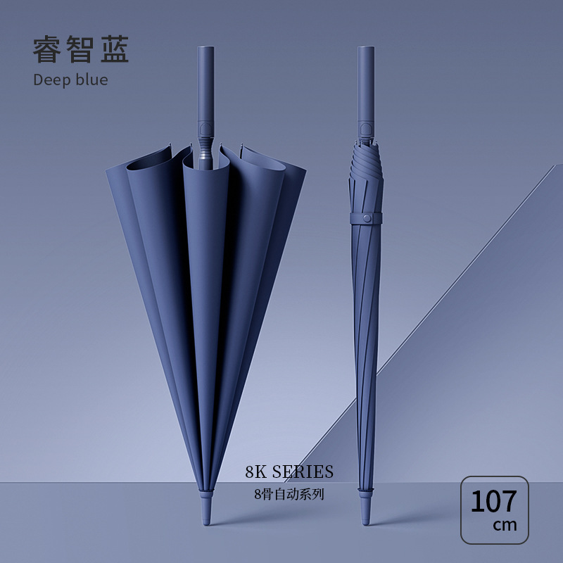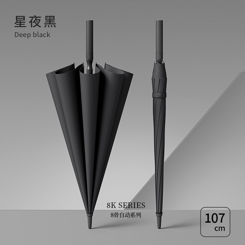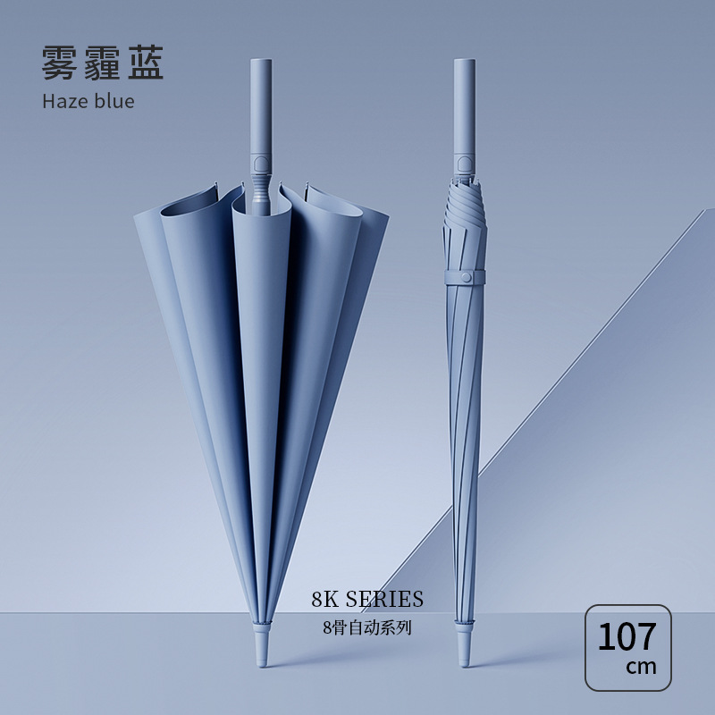 Product Name: 8-Rib Automatic Straight Umbrella Frame: Fiberglass ribs, iron central shaft Canopy: 280T pongee fabric Handle: Color-matched rubber-coated handle Specification: 685*8K Diameter under umbrella: 125CM Packaging: Single fabric sleeve, OPP bag Quantity per carton: 40 pieces/carton Carton size: 105*27*27CM Weight per umbrella: 0.65KG Net/Gross weight per carton: 26KG/27KG