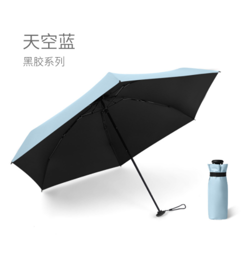 Name: 50% Off Six-Rib Black Coated Fabric Pocket Umbrella Frame: Black steel frame Canopy: Black coated fabric Handle: ABS Specifications: 50*6 ribs, diameter when open 95 cm, length when folded 18 cm Packaging: Matching color fabric cover, matte bag packaging Quantity: 100 pieces per box Box size: 45*35*30 cm Individual package size: 17.5*8.5*5.5 cm Weight: 0.23 kg Gross weight: 25 kg