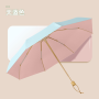 Name: Colorful Coated Five-Fold Umbrella Frame: Gold-colored aluminum alloy frame Canopy: Double-sided floral black coating fabric, semi-shading black coating Handle: Solid wood handle Specifications: 54*8, diameter under umbrella 96cm, folded length 18cm Packaging: Matching color fabric sleeve, bagged Quantity per box: 60 pieces/box Box dimensions: 50/32/30