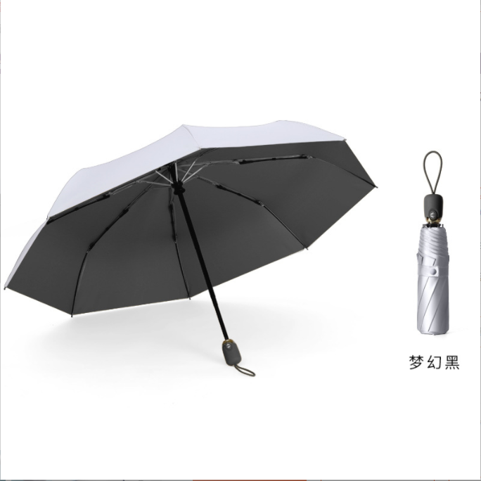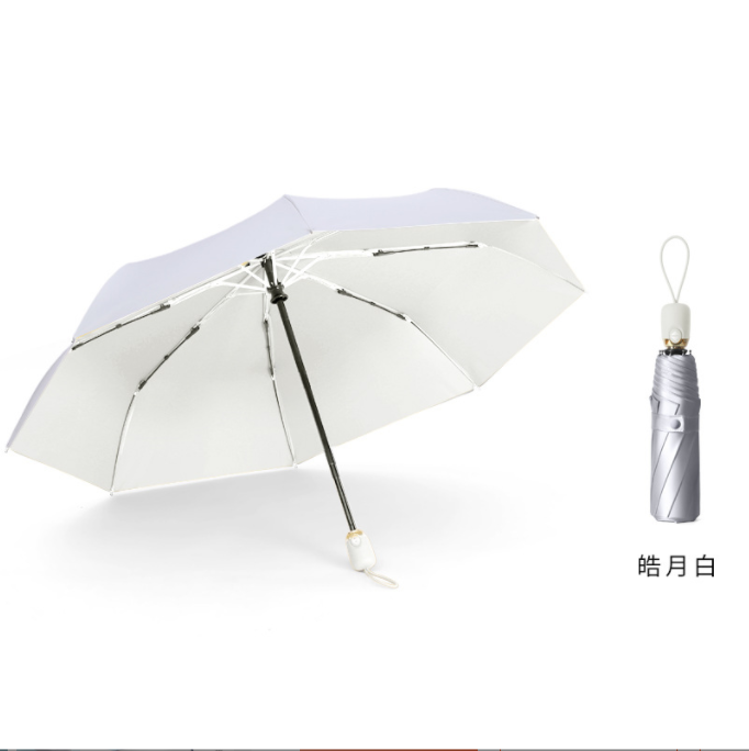 Name: Automatic Titanium Rubber Umbrella / 3209 Duck Egg Titanium Silver Rubber Canopy: Titanium rubber fabric Handle: Rubber paint Specifications: 54cm*8K Underside diameter: 98cm, folded length: 28cm Packaging: Same-color cloth cover, frosted bag packaging Quantity: 60 pieces/box Box dimensions: 50*32*30 cm Single umbrella packaging size: 30*6*6 cm Weight: 0.37 kg Gross weight: 24.15 kg