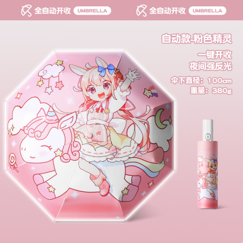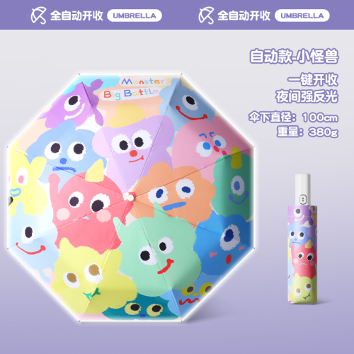 Name: Automatic Black Coating Digital Printing Children's Umbrella Frame: Steel frame with fiber Canopy: Natural light black coating fabric Handle: ABS Specifications: 50cm*8K, canopy diameter 96cm, matching color fabric sleeve, matte bag Packing quantity: 50 pieces/box Box dimensions: 40*28*26 cm Gross weight: 18KG