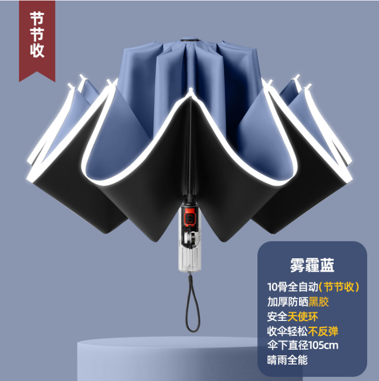 Name: 10-Rib Automatic 280T Frame: Aluminum Alloy Fiberglass Frame Fabric: 280T Pongee Fabric Handle: Rubber Paint Specification: 58.5*10 Umbrella Diameter: 105cm, Folded Length: 32cm Packaging: Zipper Bag with Matching Fabric Cover, Frosted Bag Packaging Quantity: 50 pieces/box Box Size: 45*35*30 Single Umbrella Packaging Size: 34*6.5*6.5 Weight: 0.42kg Gross Weight: 24.9kg