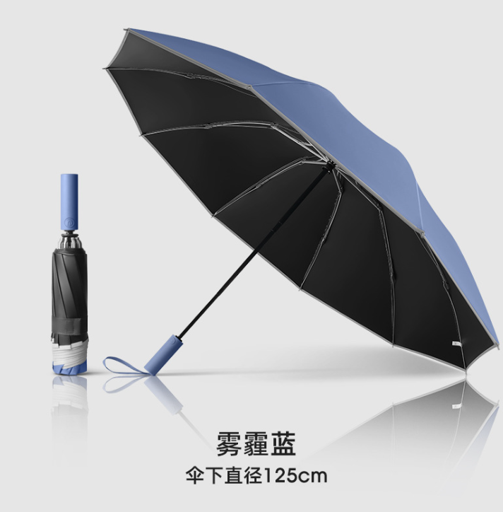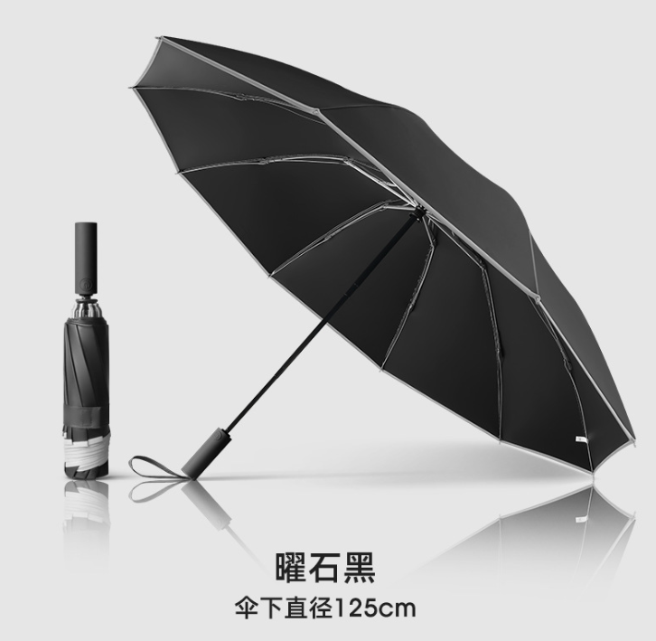Item Number: Three-fold Automatic Reverse Name: 10-Rib Extra Large Reverse Umbrella Frame: Steel frame with fiber Canopy: Black coated fabric Handle: ABS handle Specification: 27 inches * 10 ribs Umbrella diameter: 105 cm, folded length: 30 cm Packaging: Matching color cloth cover, matte bag packaging Quantity: 50 pieces/box Box dimensions: 45/35/30 cm Gross weight: 22 KG