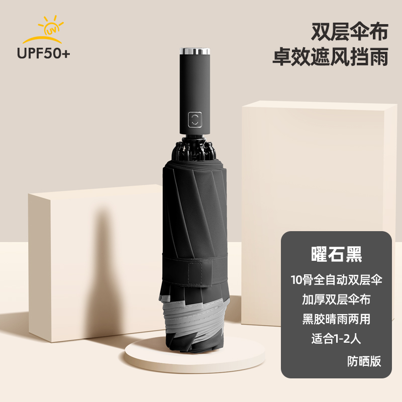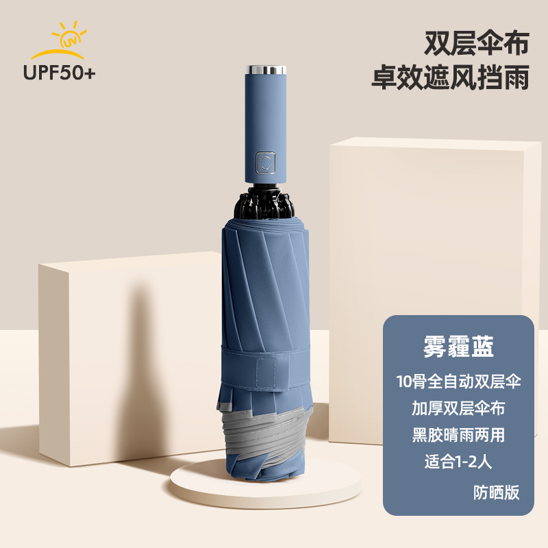 Name: 10-Rib Automatic 280T Frame: Aluminum Alloy Fiberglass Frame Fabric: 280T Pongee Fabric Handle: Rubber Paint Specification: 58.5*10 Umbrella Diameter: 105cm, Folded Length: 32cm Packaging: Zipper Bag with Matching Fabric Cover, Frosted Bag Packaging Quantity: 50 pieces/box Box Size: 45*35*30 Single Umbrella Packaging Size: 34*6.5*6.5 Weight: 0.42kg Gross Weight: 24.9kg