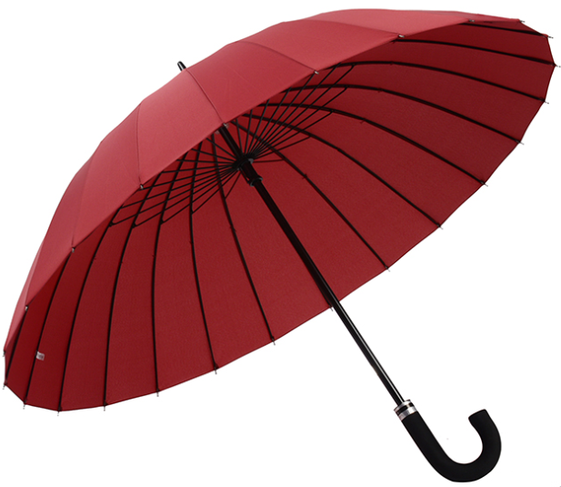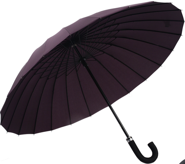 Product Name: 24-Rib Curved Handle Straight Umbrella Frame: Iron ribs, iron central shaft Canopy Fabric: Quick-dry water-repellent fabric Handle: EVA curved handle Specification: 585*24K Diameter Under Umbrella: 105 cm Packaging: OPP bag Quantity per Carton: 40 pieces/carton Carton Size: 95*26*26 cm Weight per Umbrella: 0.5 kg Net/Gross Weight per Carton: 20 kg / 21 kg