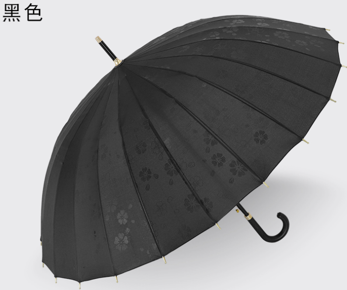 Product Name: 16-rib Wooden Straight Handle Umbrella Frame: Fiberglass ribs, iron central shaft Canopy: Black coated fabric Handle: Wooden straight handle Specification: 685*16K Umbrella Diameter: 123CM Packaging: Individual fabric sleeve, OPP packaging Quantity per Box: 50 pieces/box Box Dimensions: 95*27*27CM Weight per Umbrella: 0.6KG Net/Gross Weight per Box: 24KG/25KG