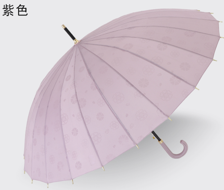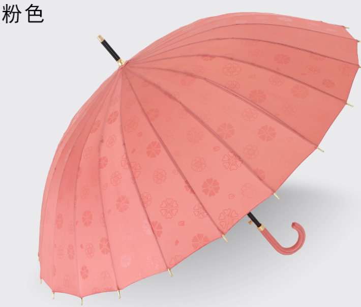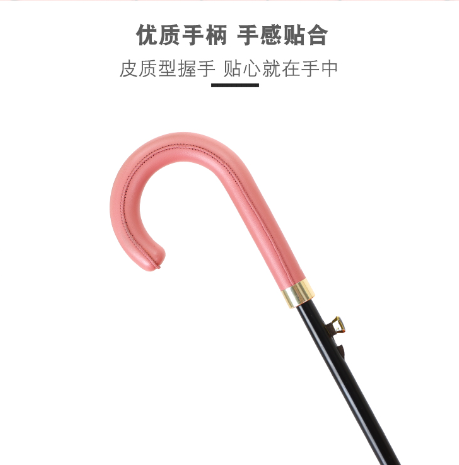 Product Name: 24-Rib Curved Handle Straight Umbrella Frame: Fiberglass ribs, iron central shaft Canopy: Water-repellent printed fabric Handle: Leather curved handle Specification: 585*24K Umbrella Diameter: 105CM Packaging: OPP bag Quantity per Box: 40 pcs/box Box Size: 95*26*26CM Weight per Umbrella: 0.6KG Net/Gross Weight per Box: 24KG/25KG