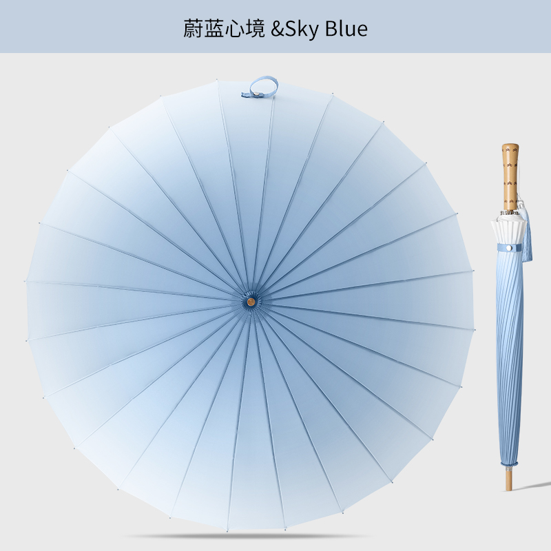 Product Name: 24-Rib Wooden Straight Handle Umbrella Frame: Fiberglass ribs, iron central shaft Canopy: Black coated fabric Handle: Wooden straight handle Specification: 685*24K Umbrella Diameter: 123CM Packaging: Individual fabric sleeve, OPP packaging Quantity per Box: 40 pieces/box Box Dimensions: 95*27*27CM Weight per Umbrella: 0.6KG Net/Gross Weight per Box: 24KG/25KG
