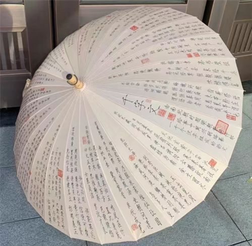 Product Name: 24-Rib Thousand Character Classic Style Umbrella Umbrella Frame: Fiber ribs, bamboo shaft Umbrella Canopy: 210T pongee fabric Handle: Straight wooden handle with tassel Specification: 535*24 ribs Diameter under the umbrella: 95CM Packaging: Single fabric sleeve, OPP bag Quantity per Box: 40 pieces/box Box Dimensions: 95*27*27CM Weight per Umbrella: 0.51KG Net/Gross Weight per Box: 21KG/22KG