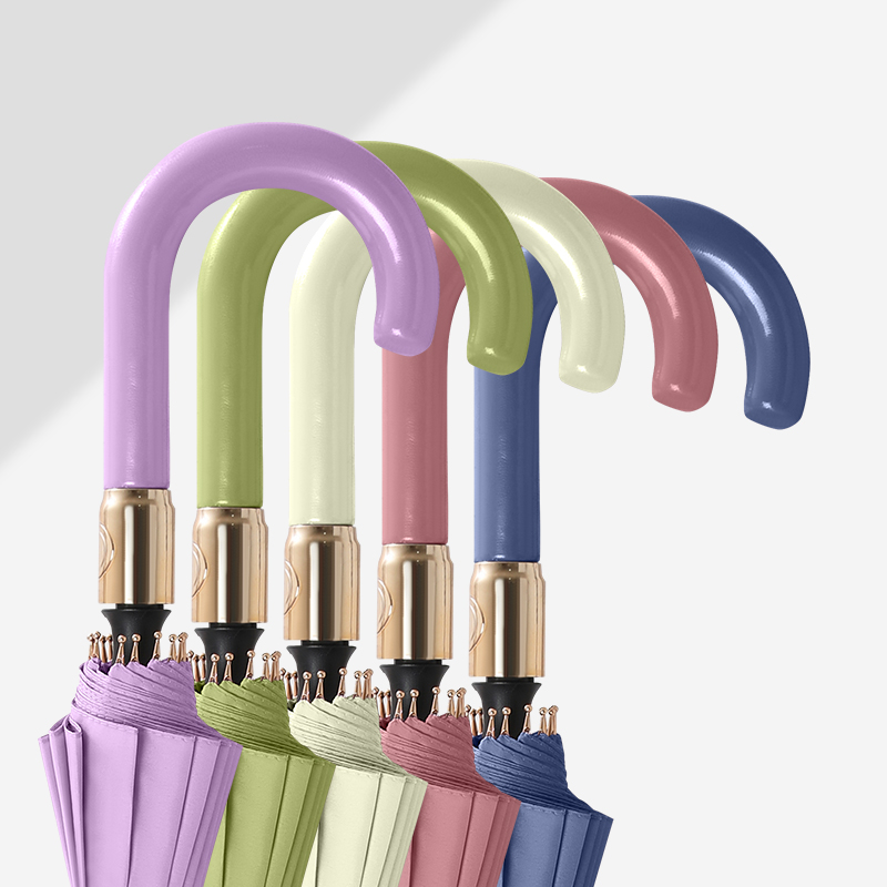 Product Name: 16-Rib Curved Handle Straight Umbrella Frame: Fiberglass ribs, iron central rod Canopy: Water-activated blooming impact fabric Handle: Leather curved handle Specification: 585*16K Diameter under the umbrella: 108CM Packaging: Waterproof cover Quantity per carton: 40 pieces of 585 model per box Carton size: 95*27*27CM Weight per umbrella: 0.6KG Net/Gross weight per carton: 21KG/22KG