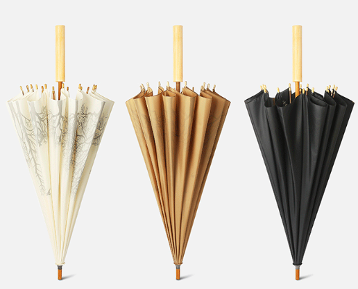 Product Name: 16-rib Wooden Straight Handle Umbrella Frame: Fiberglass ribs, iron central shaft Canopy: Black coated fabric Handle: Wooden straight handle Specification: 685*16K Umbrella Diameter: 123CM Packaging: Individual fabric sleeve, OPP packaging Quantity per Box: 50 pieces/box Box Dimensions: 95*27*27CM Weight per Umbrella: 0.6KG Net/Gross Weight per Box: 24KG/25KG