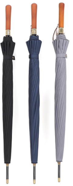 Product Name: 16-rib Wooden Straight Handle Umbrella Frame: Fiberglass ribs, iron central shaft Canopy: Black coated fabric Handle: Wooden straight handle Specification: 685*16K Umbrella Diameter: 123CM Packaging: Individual fabric sleeve, OPP packaging Quantity per Box: 50 pieces/box Box Dimensions: 95*27*27CM Weight per Umbrella: 0.6KG Net/Gross Weight per Box: 24KG/25KG