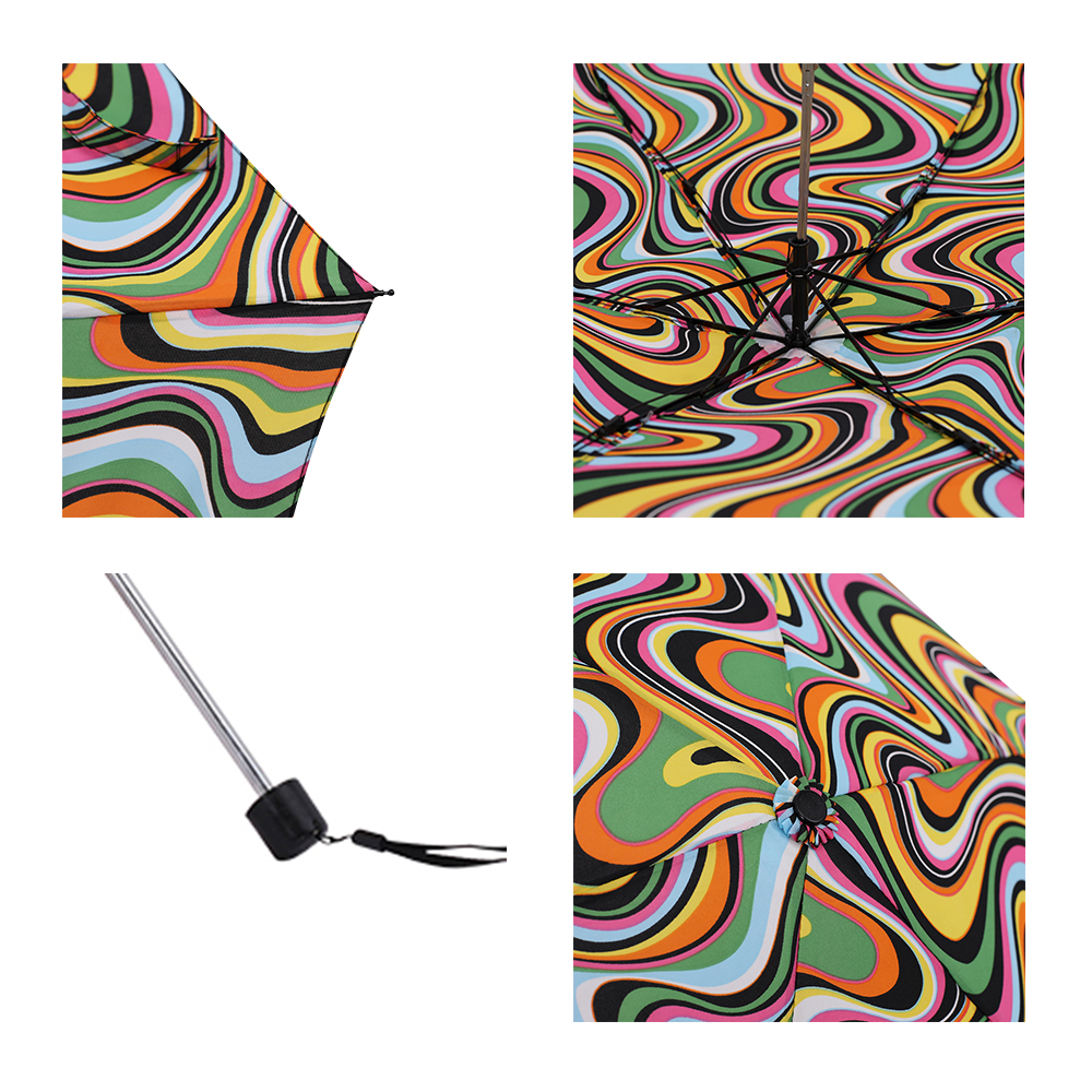 Name: Three-Fold Astronaut Umbrella Frame: Steel frame with fiber double ribs Canopy: Black-coated fabric Handle: Astronaut handle Size: 54*8 cm Diameter when open: 102 cm, Length when folded: 31 cm Packaging: Matching color fabric cover, OPP bag packaging Quantity: 60 pcs/box Box dimensions: 45/35/30 cm Gross weight: 17 kg