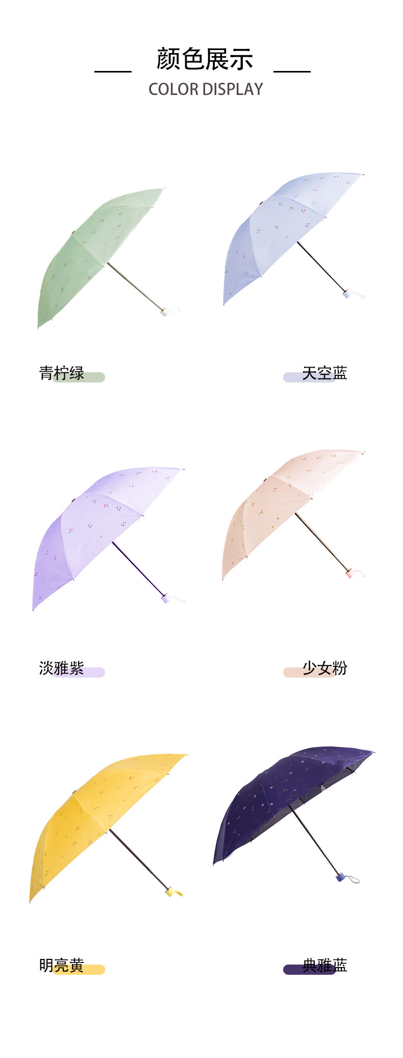 Name: Three-Fold Manual Umbrella Frame: Steel frame, fiber Canopy: Black rubberized fabric Handle: Rubber coating Specifications: 54*6, diameter under umbrella 90cm, folded length 22cm Packaging: Matching fabric sleeve, frosted bag packaging Quantity: 60 pieces per box Box dimensions: 48*30*28 cm Gross weight: 18KG