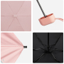 Name: 50% Fold Ring Handle Umbrella Frame: Black steel frame Canopy: Thickened colored PVC Handle: Rubber paint Size: 52*6K Diameter under umbrella: 90 cm, folded length: 18 cm Packaging: Same color fabric cover with bag Quantity: 60 pieces/box Carton size: 48*35*26 cm